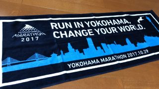 台風の影響で残念ながら中止となってしまった横浜マラソン。11月中に届くように順次郵送となっていた「出走記念タオル」が届きました。