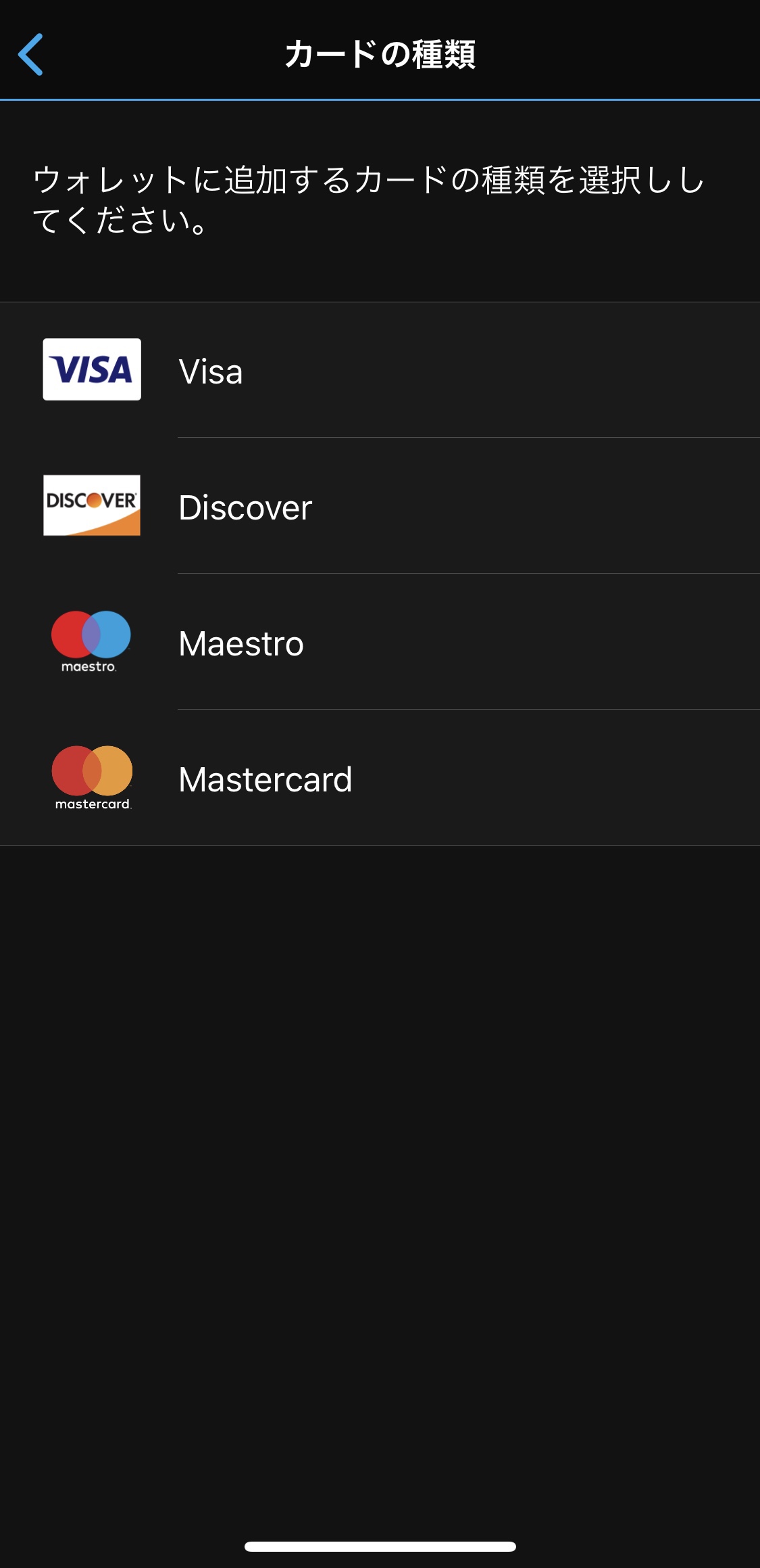 カードの種類を選択する画面が出てきますので、ここでは「VISA」を選択します。