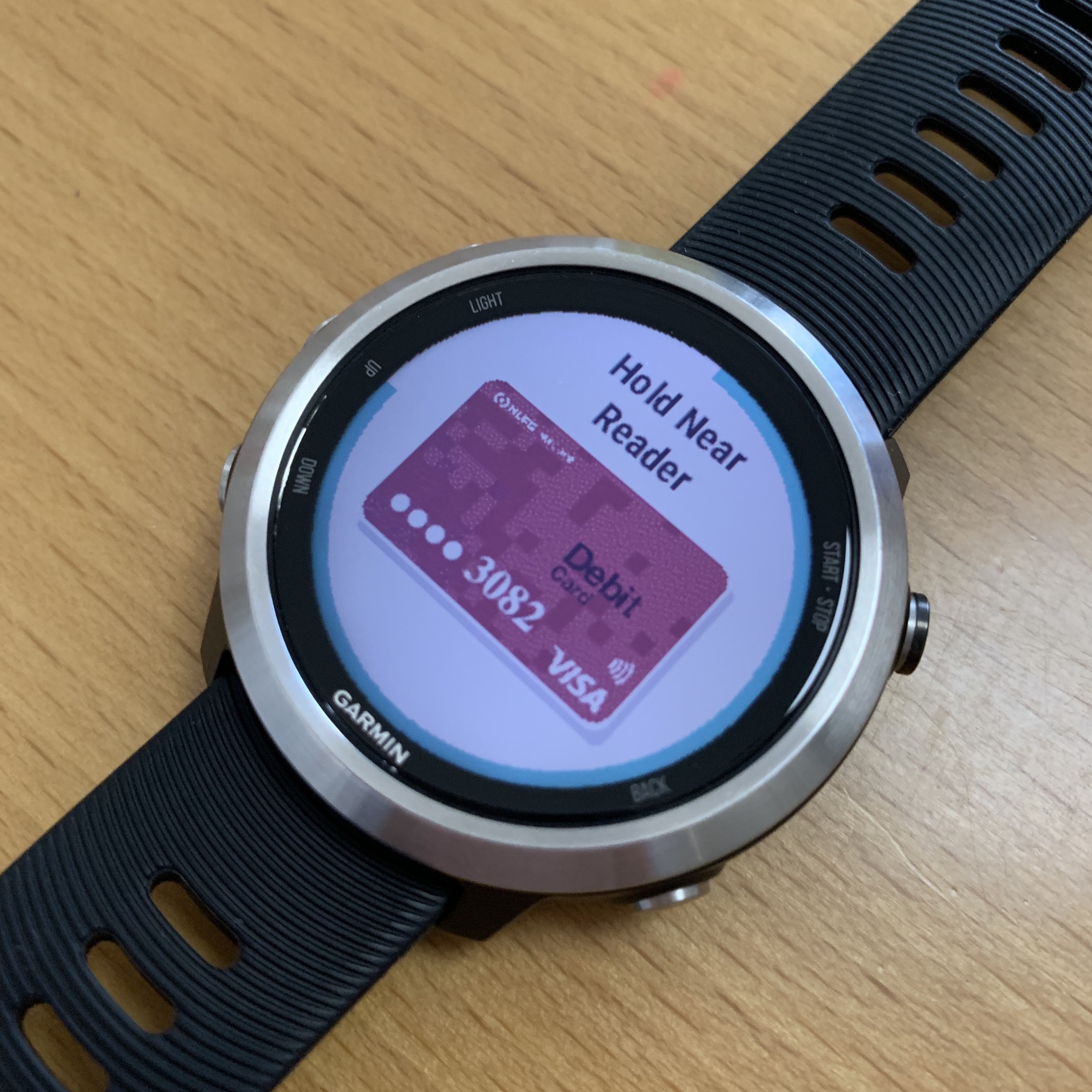 Garmin PayとはVISAやMasterCardなどのクレジットカード・デビットカードをウォッチに登録し、「ピッ!」とタッチする(かざす)だけで、コンビニ等で支払いができるサービスです。