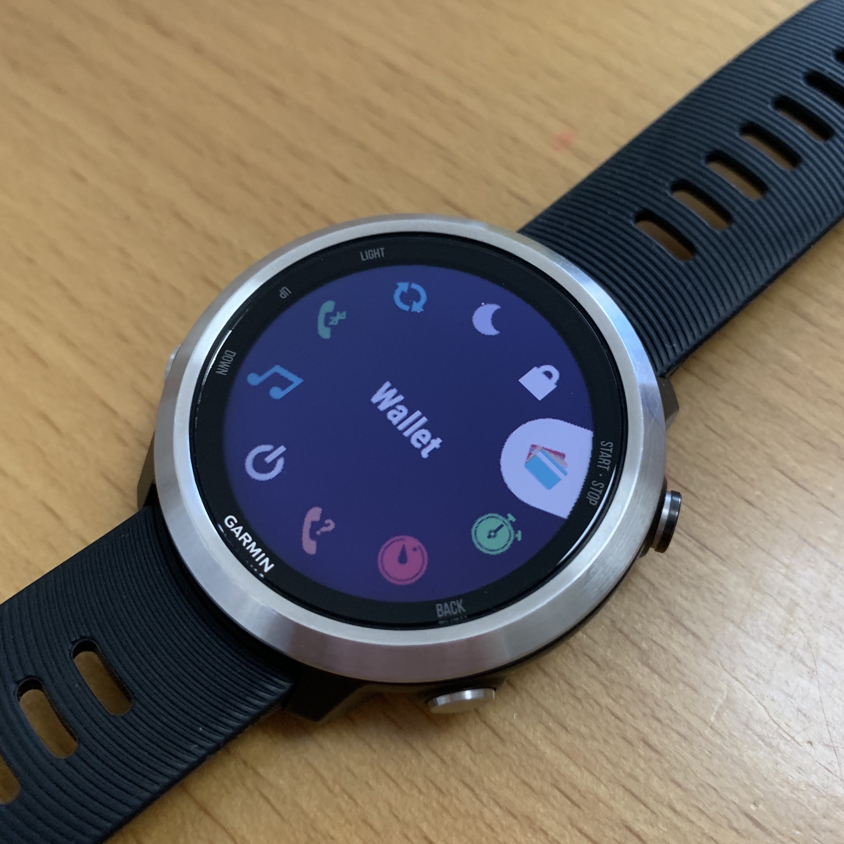 ①左上の「LIGHT」ボタンを長押ししてコントロールメニューを表示。「Walletを選択」します。